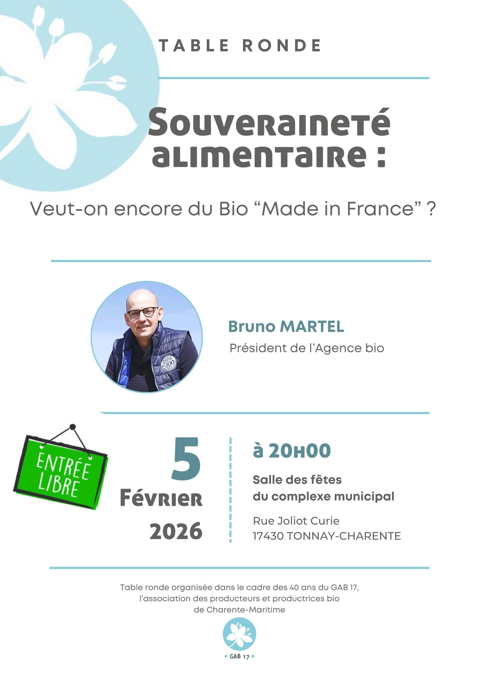 Affiche table ronde AG GAB 17Souveraineté alimentaire : veut-on encore du bio