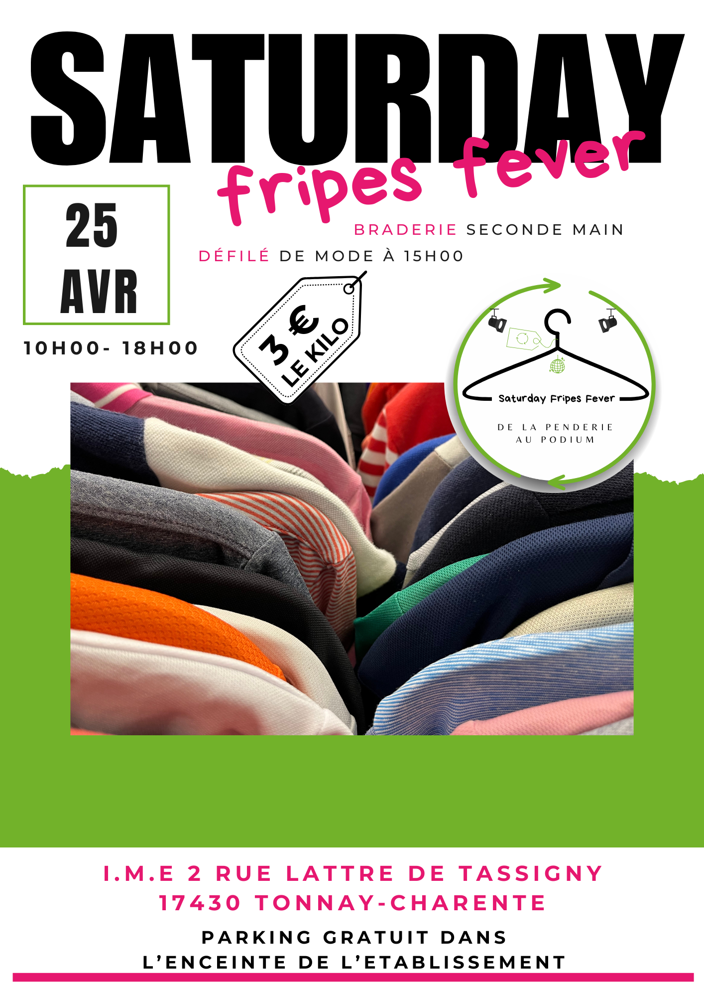 Le samedi 25 avril 2026, l'Institut médico-éducatif (IME) de Tonnay-Charente accueille la grande braderie textile organisée par Vivractif/ Atout Solidaire, de 10h à 18h.
